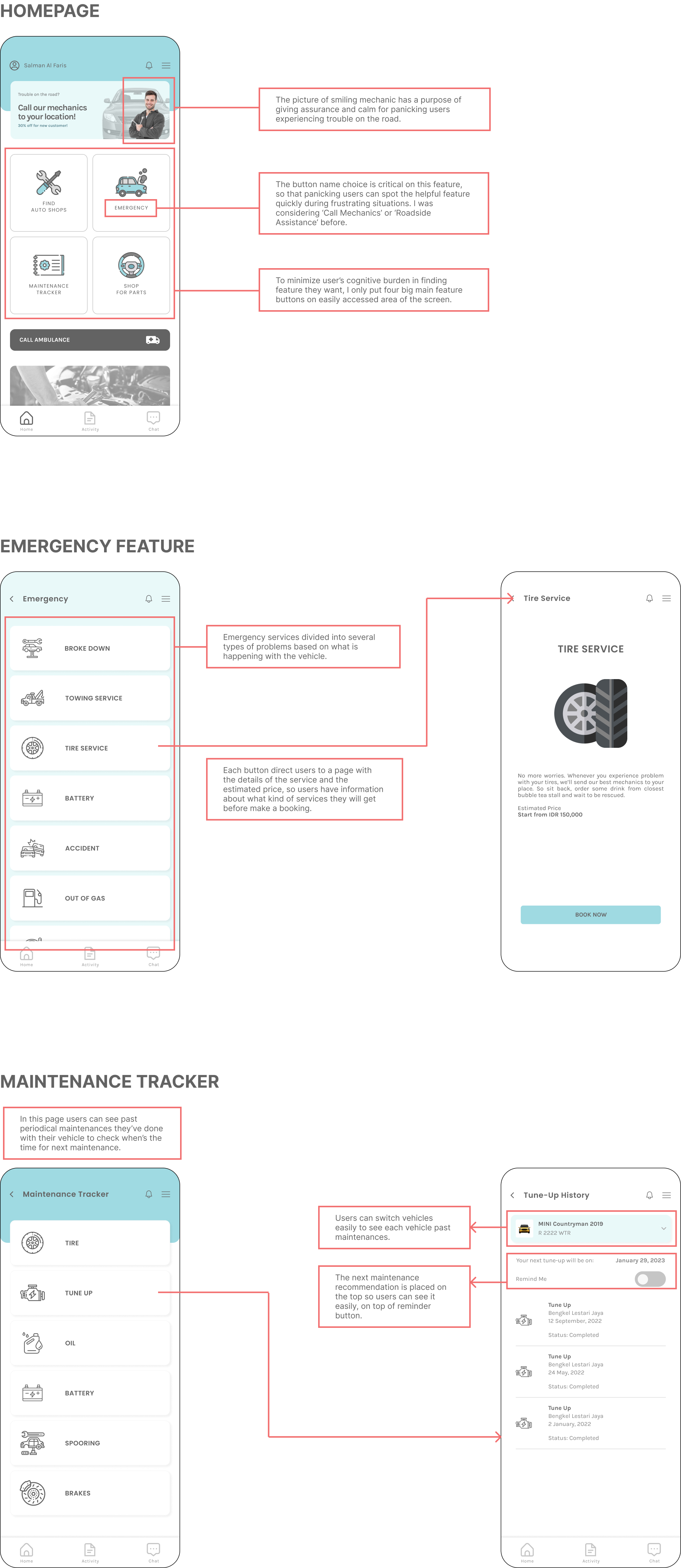 - Most users had difficulties in finding maintenance tracker feature because they assumed it was in the same section as 'maintenance history'. It was also due to UX writing error that I hadn't find the right Indonesian words for 'tracker'.